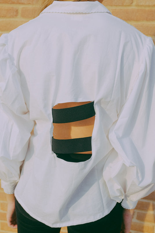 Upcycling-Camicia beige con apertura a cuore sul retro