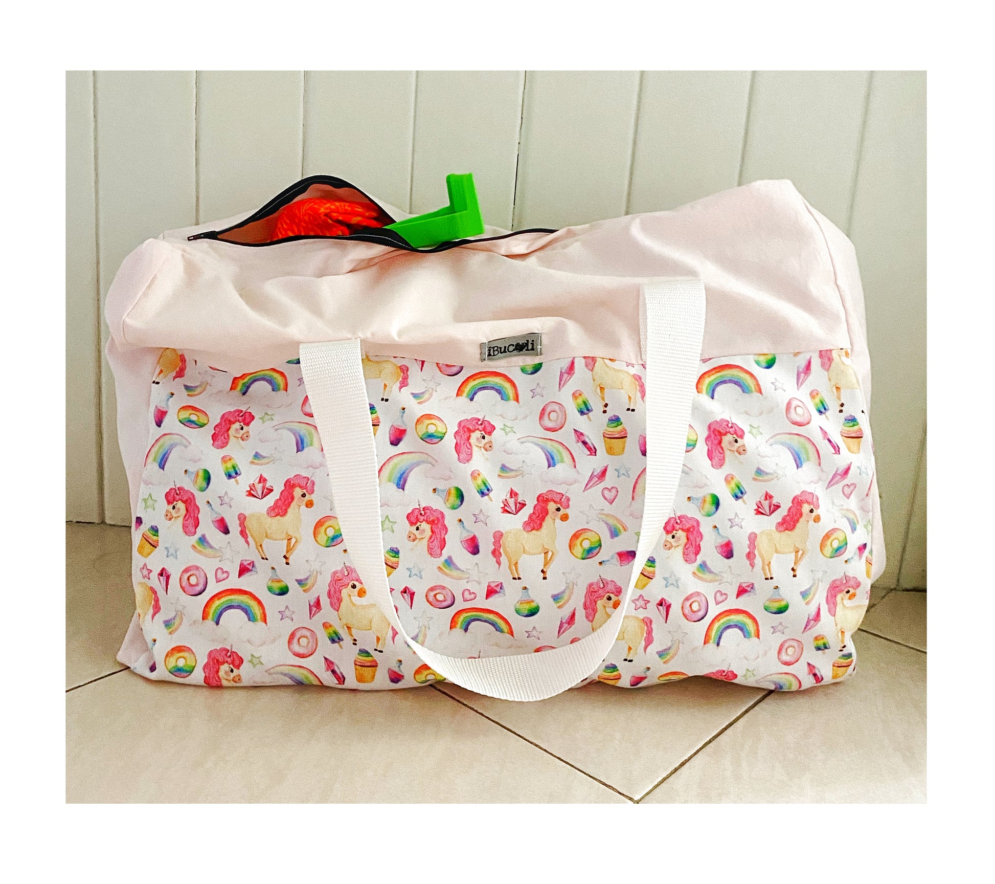 Crea borsone personalizzato con stoffe , passamaneria e con nome in vinile