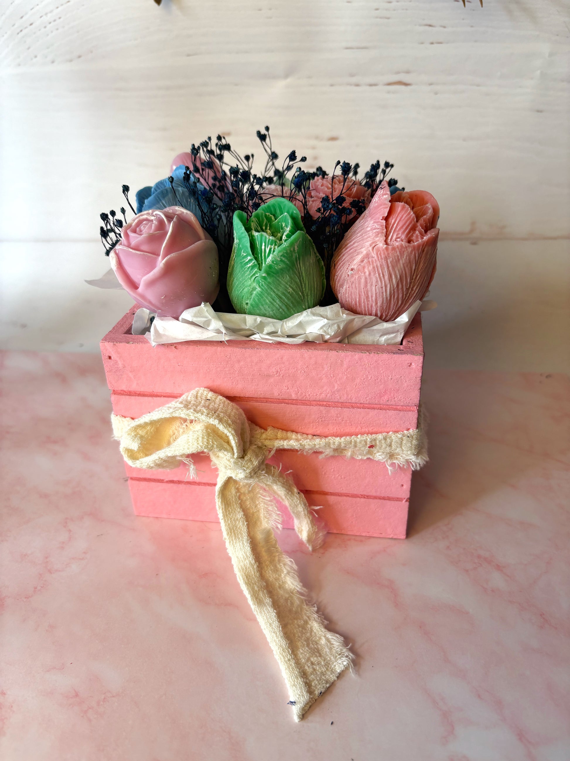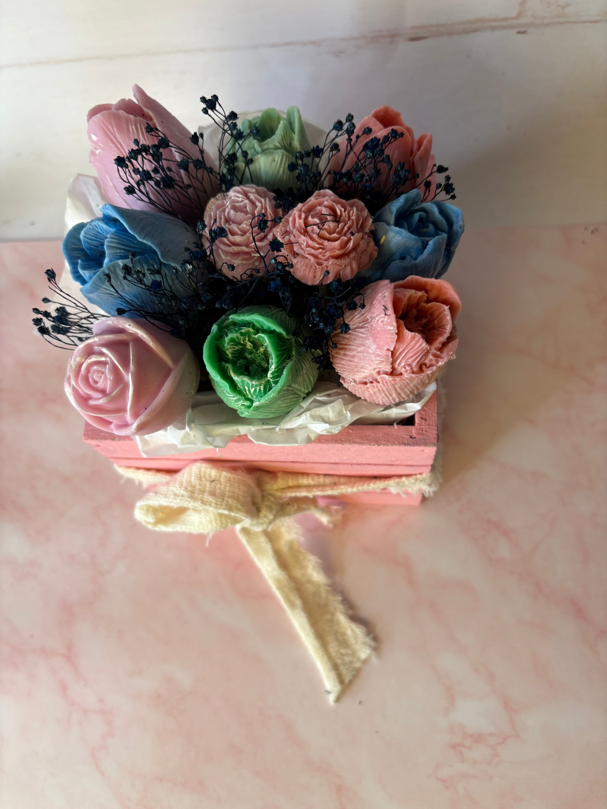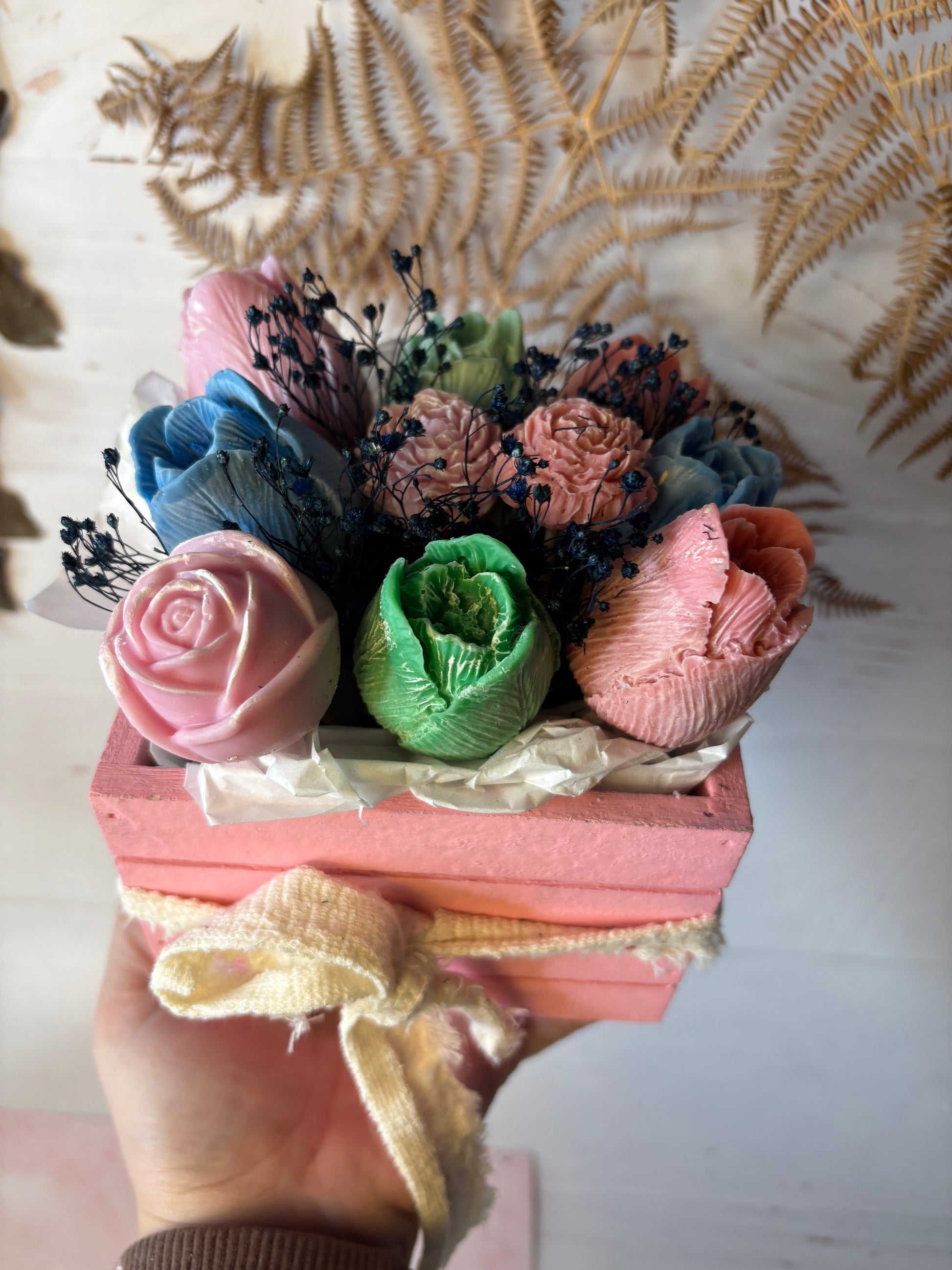 Realizzata con fiori essiccati e fiori in cera di soia, ogni pezzo è unico e personalizzabile.