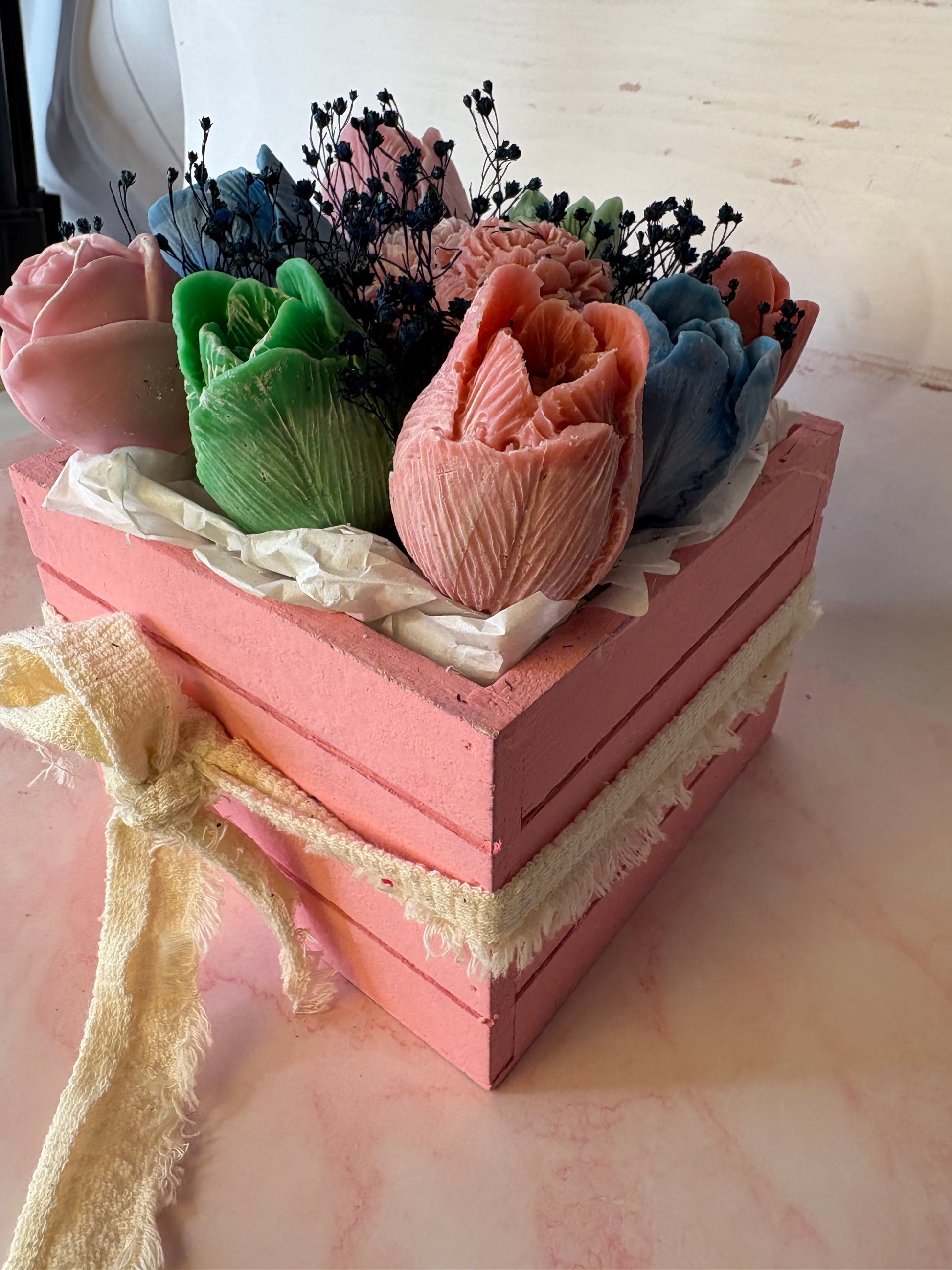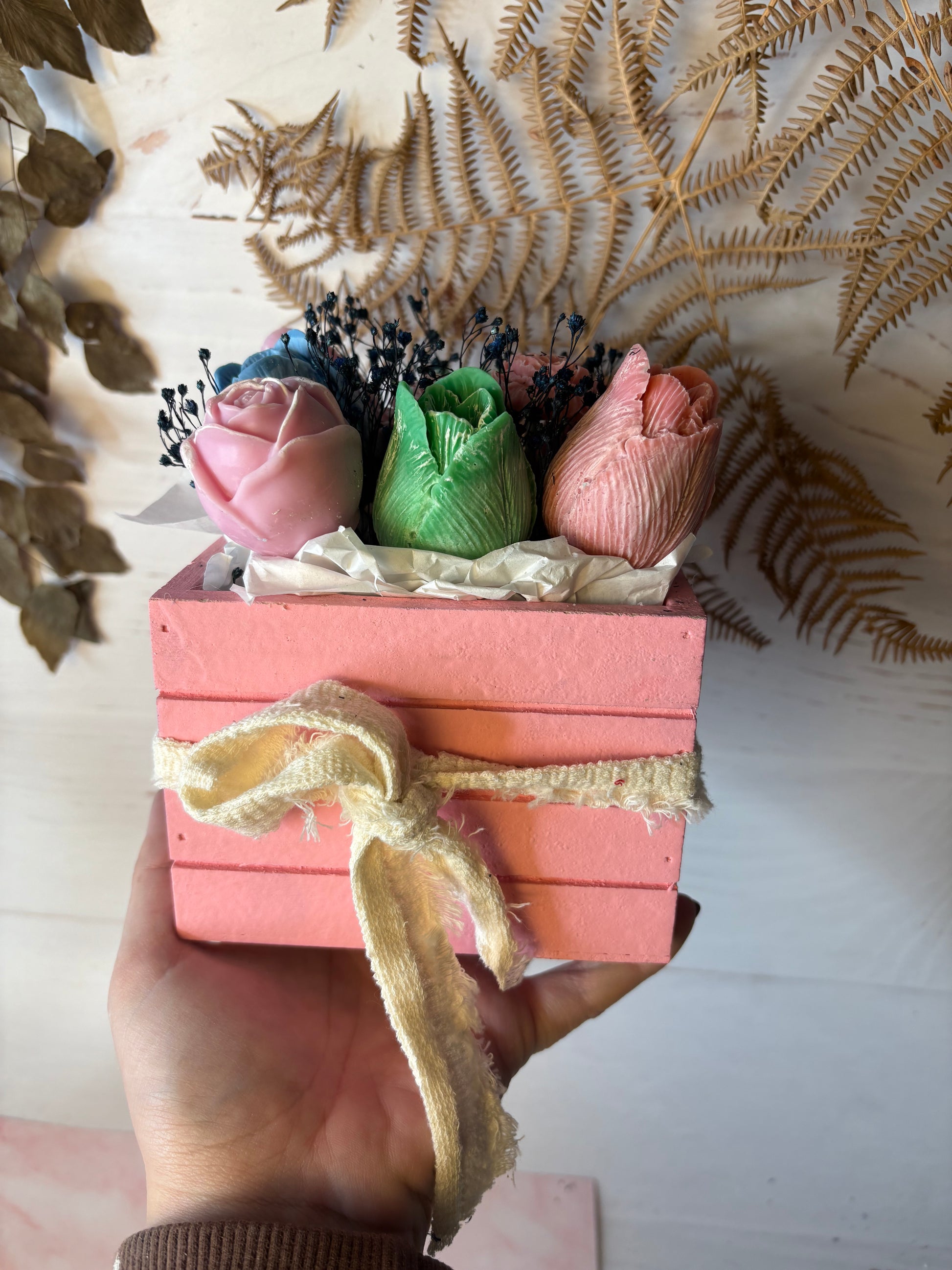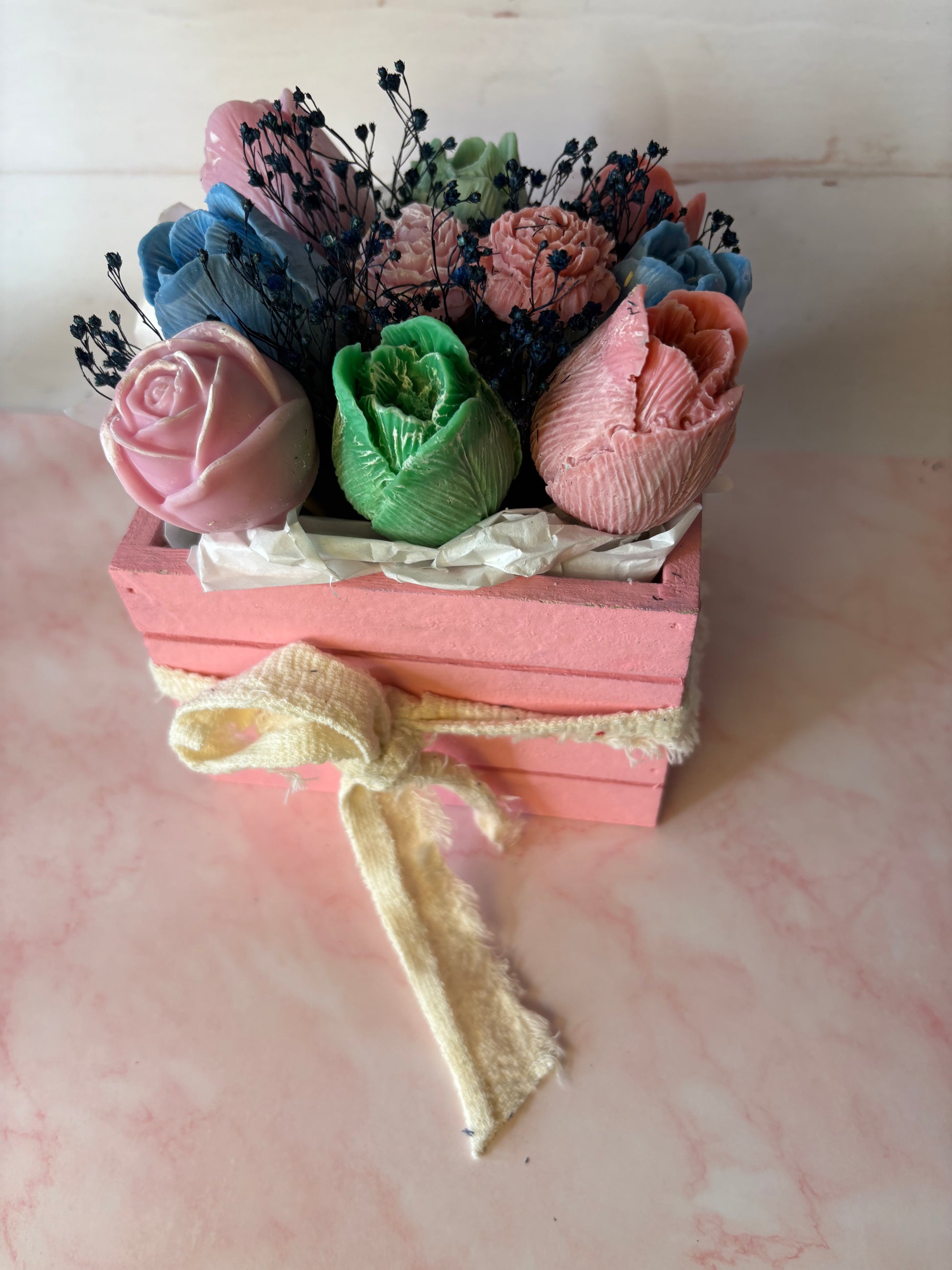 Realizzata con fiori essiccati e fiori in cera di soia, ogni pezzo è unico e personalizzabile.