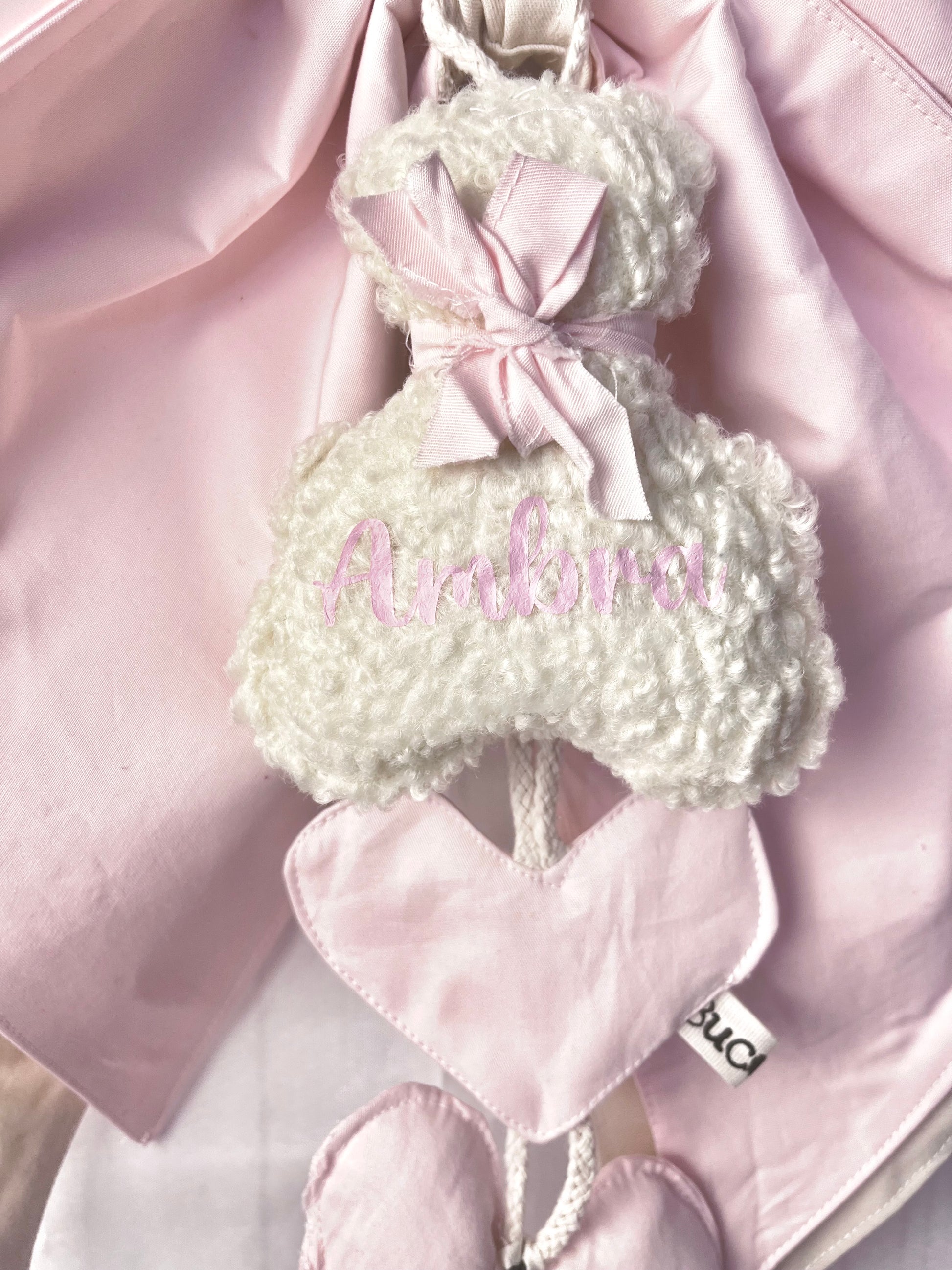FIOCCO IMBOTTITO (con animaletto rimovibile, cuori pendenti, asimmetrico, imbottito)