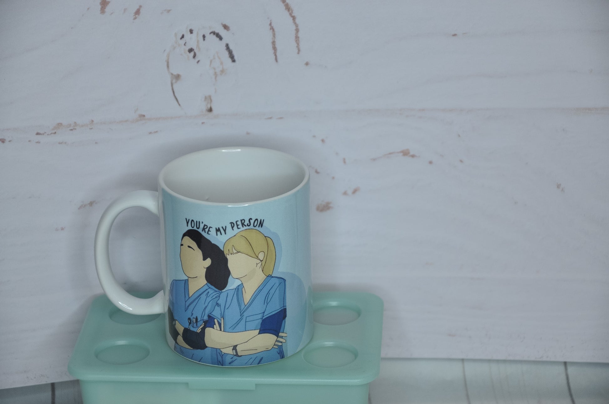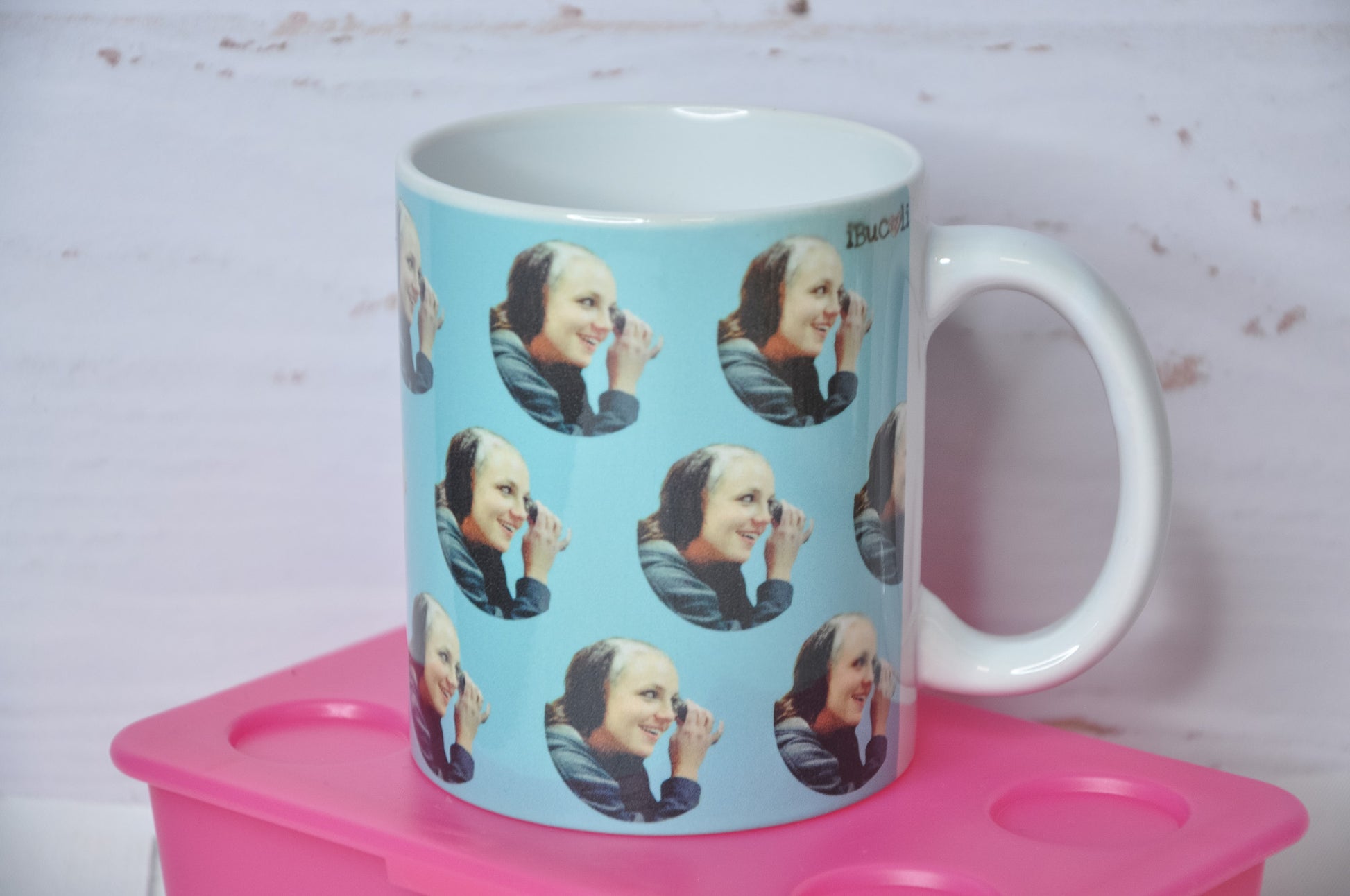 tazza in ceramica bianca, personalizzata con grafica handmade